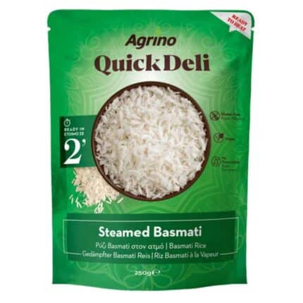 AGRINO Ρύζι Basmati 10’ 500gr. Γρήγορο, αρωματικό Basmati ρύζι που βράζει αφράτο και σπυρωτό σε 10 λεπτά, ιδανικό για καθημερινά και ασιατικά γεύματα.