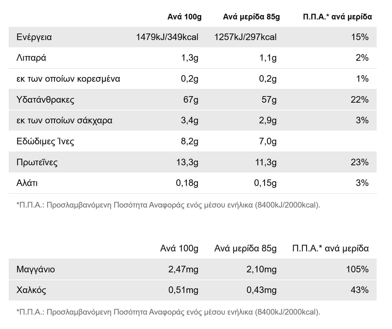 Διατροφικός Πίνακας